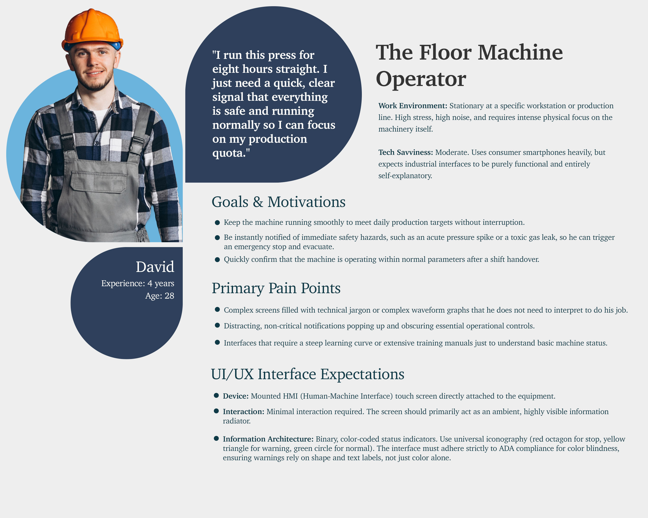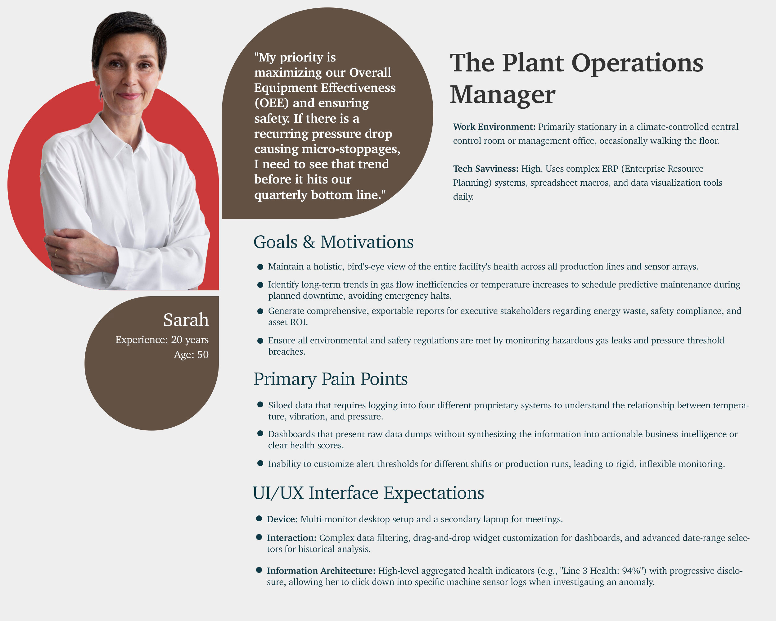 Designing an effective interface for the Sipro Machine Monitoring System requires more than just displaying sensor data; it demands a comprehensive grasp of the industrial landscape and the high-stakes environment in which our end-users operate.